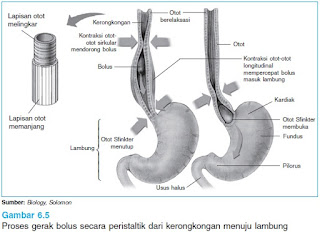 Proses gerak bolus secara peristaltic dari kerongkongan menuju lambung